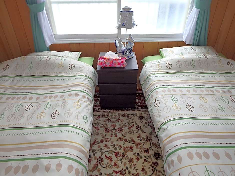 This twin room is air-conditioned and has a shared bathroom, tatami and garden views. The unit has 2 futons.